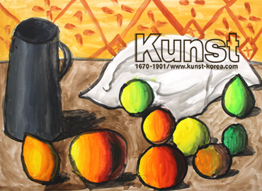 광주지사의 예원이는 KUNST KINDER MUSEUM 수업에서 폴 세잔의 다양한 정물화를 감상해보고, 그의 작품 중 하나를 모작해보았습니다. 모든 사물을 단순한 형태로 보았던 세잔처럼, 우유 통과 사과를 원통과 구로 단순하게 표현하였으며, 각각의 사물을 이리저리 배치하여 균형 있는 구도의 작품으로 완성하였습니다. 광주지사_김예원(10세)