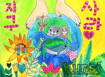 충주지사 정민이는 EVERYDAY & EVERYART 수업을 하며 메세지를 그림으로 표현해보는 시간을 가졌습니다. 자연의 상징물을 화면 안에 조화롭게 구성하고 난색, 한색을 간결하게 사용하여 눈에 띄는 작품을 완성해주었습니다. 충주지사_김정민(9세)