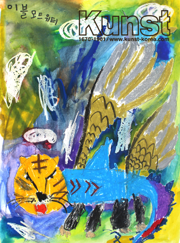 청주상당지사의 래오는 WALDORF KINDERGARTEN 수업에서 나만의 상상 동물을 그림으로 표현해보았습니다. 래오의 상상 동물은 호랑이의 얼굴과 상어의 몸통, 그리고 네 개의 발이 있으며, 멋진 황금색의 날개를 가진 모습입니다. 또한, 이블모드위티라는 이름을 가진 재미있는 상상 동물에 맞춰 신비로운 느낌으로 채색한 배경이 한데 어우러진 독창적인 작품입니다. 청주상당지사_정래오(7세)