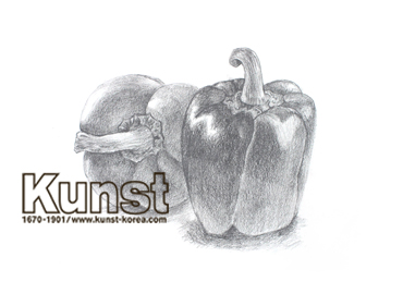 경남김해지사의 지원이는 KUNST PROFESSIONAL 수업에서 원기둥을 응용하여 피망을 소묘로 표현해보았습니다. 명암을 세분화하여 피망의 올록볼록한 특징을 잘 표현하였으며, 꼭지 주위의 가장 밝은 부분 주위에 가장 어두운 톤을 대비시켜 양감이 느껴지도록 강조하여 표현한 작품입니다. 경남김해지사_김지원(15세)