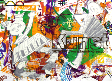 대전중구지사의 은채는 KUNST KUNST KINDER MUSEUM 수업에서 바실리 칸딘스키의 추상 회화를 공부해 보았습니다. 형태와 색채 모두 격렬한 동세를 보이는 작품들이 특징인 칸딘스키의 작품들을 더 자세히 배워보는 시간이었습니다. 칸딘스키의 추상적 표현을 배경으로 사용하고 은채의 음악에 대한 열정을 사실적 표현으로 완성한 멋진 작품입니다. 음악과 철학 사상을 작품에 공유했던 칸딘스키 작품에 영감을 받아 은채만의 작품이 탄생하였습니다. 대전중구지사_오은채(10세)