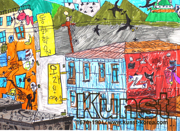 충주지사의 지율이는 EVERYDAY & EVERYART 수업에서 공공 미술 프로젝트의 일환인 벽화에 대해 배워보는 시간이었습니다. 벽화는 삭막한 콘크리트 벽이나 노후화된 건물을 생기있게 만들어주는 역할 및 마을의 메세지를 전하는 매체의 의미가 되기도 합니다. 지율이만의 독창적인 선과 화풍이 멋진 구도와 재미있는 디자인을 만나 훌륭한 마을을 완성해 주었습니다. 충주지사_이지율(9세)