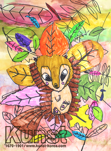 대전동구지사의 민주는 KUNST KINDHEIT 수업에서 다양한 나뭇잎을 그려보고 가을 색감을 찾아 색칠해 본 뒤 오브제로 활용하는 시간이었습니다. 큰 나뭇잎, 작은 나뭇잎, 둥글고 넓적한 잎, 뾰족한 잎 등 주황, 노랑, 갈색, 연두색의 다채로운 색감과 모양으로 조화롭게 구성하였습니다. 대전동구지사_김민주(7세)