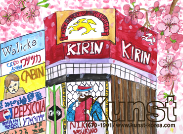 광주서구지사의 현서는 KUNST TRAVEL 수업에서 일본 여행 중에서도 활기찬 도시 오사카를 그려보았습니다. 오사카에서도 가장 생기 넘치고 화려한 도톤보리의 광고판들은 도시의 랜드마크와 함께 가장 인상적인 장면으로 현서에게 기억되었습니다. 아름다운 봄과 오사카의 풍경을 현서만의 독창적인 기법으로 멋지게 표현한 작품입니다. 광주서구지사_정현서(13세)