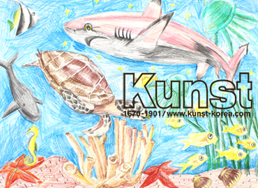 청주청원지사의 민찬이는 NATURAL & SCIENCE 수업을 통해 다양한 바닷속 생물들을 관찰하고 그려보는 시간을 가졌습니다. 살아움직이는 듯한 모습을 잘 표현한 거북이, 알록달록 열대어, 날렵함이 빛나는 상어와 해파리, 해마와 산호 등을 색연필로 정밀하게 묘사하고 배경까지 색연필의 질감을 잘 살려 바닷속의 풍경을 멋지게 완성한 작품입니다. 청주청원지사_박민찬(12세)