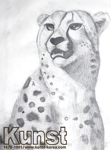대전중구지사의 선우는 NATURAL & SCIENCE 수업에서 육지에 사는 동물 중 가장 빠른 동물로 알려져 있는 치타를 그려보았습니다. 치타의 신체적 특징인 눈 안쪽에서 턱까지 눈물자국처럼 보이는 검은색 줄무늬를 배우며 자세히 관찰하였습니다. 치타의 작은 얼굴과 날씬한 몸과 긴 다리와 몸의 까만 점까지 실제 살아있는 치타처럼 멋지게 표현하였습니다. 대전중구지사_안선우(13세)