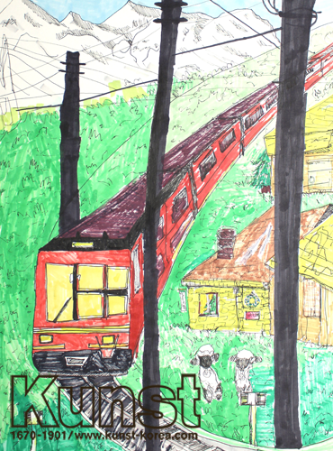 마포지사의 서준이는 KUNST TRAVEL 수업을 하며, 유럼의 중심인 오스트리아의 문화와 역사를 배워보는 시간이었습니다. 비엔나와 잘츠부르크, 그라츠를 지나 알프스를 지나는 오스트리아 기차 여행을 떠올려 보고 그려보았습니다. 유럽에서 가장 아름다운 풍경을 볼 수 있다는 오스트리아 열차 여행을 통해 서준이만의 멋진 작품이 완성되었습니다. 마포지사_이서준(12세)