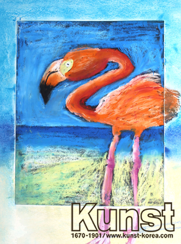 광명지사의 진호는 KUNST FACTORY 수업에서 화지를 사포로 이용하여 크레파스로 표현해 보는 시간이었습니다. 사포의 질감을 느껴보며 플라밍고(홍학)를 관찰하고 그려보는 시간이었습니다. 휘어진 부리에 긴 다리와 긴 목, 분홍색 깃털의 특징을 잘 살려 거친 사포의 질감을 통해 부드러운 깃털까지 섬세하고 멋지게 표현하였습니다. 광명지사_심진호(10세)