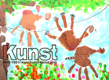 광명지사의 세연이는 KUNST KINDHEIT 수업에서 손바닥을 활용하여 익살맞고 장난끼 가득한 원숭이를 표현해 주었습니다. 나무위에서 자유롭게 움직이는 원숭이를 관찰하고 동세를 확인하며 손바닥을 이용하여 자신이 표현하고자 하는 바를 거침없이 표현하였습니다. 손바닥 뿐만 아니라 손가락을 이용하여 자유롭게 찍어내며 멋진 숲의 모습까지 감각적으로 그려낸 멋진 작품입니다. 광명지사_박세연(7세)